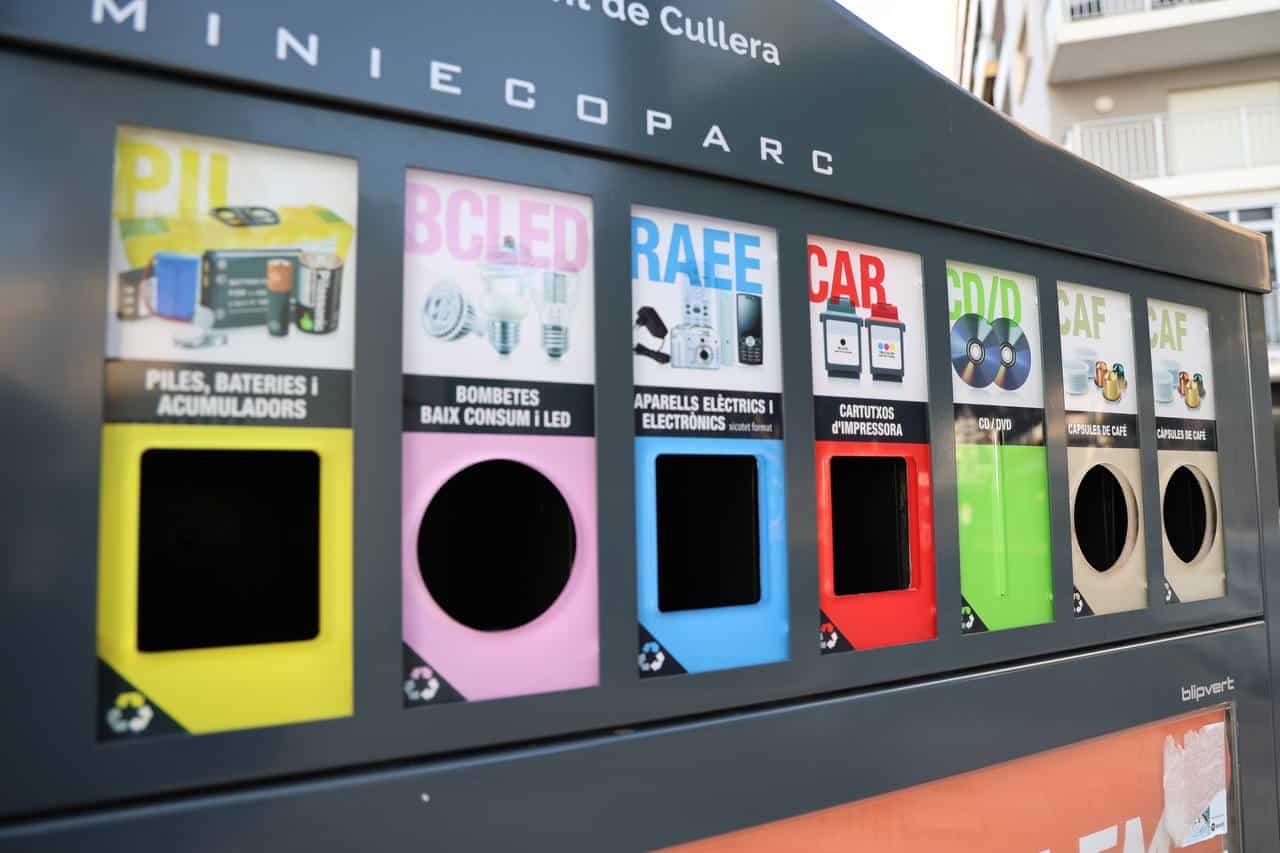 CULLERA. 13-01-26. L’Ajuntament de Cullera ha posat en marxa una nova xarxa de miniecoparcs urbans amb l’objectiu de facilitar a la ciutadania el reciclatge de xicotets residus domèstics d’ús quotidià que es generen en la llar, com ara piles, bombetes, càpsules de café, cartutxos de tinta, xicotets aparells electrònics, com a carregadors de mòbil o càmeres, o bombetes i llums LED.